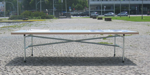 wird durch einfache maßnahmen so verändert, dass aus einem schreibtisch ein lounge-tisch werden kann.
